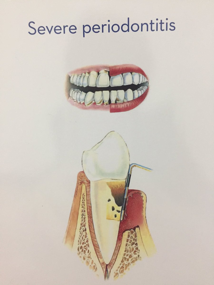 يظهر لدينا عمق الجيب اللثوي بين السن واللثة بشكل سيئ نتيجةً عن تراكم الباكتيريا مما قد يسبب إلتهابات في اللثة وامراض صحية وتخلخل الاسنان وسقوطها