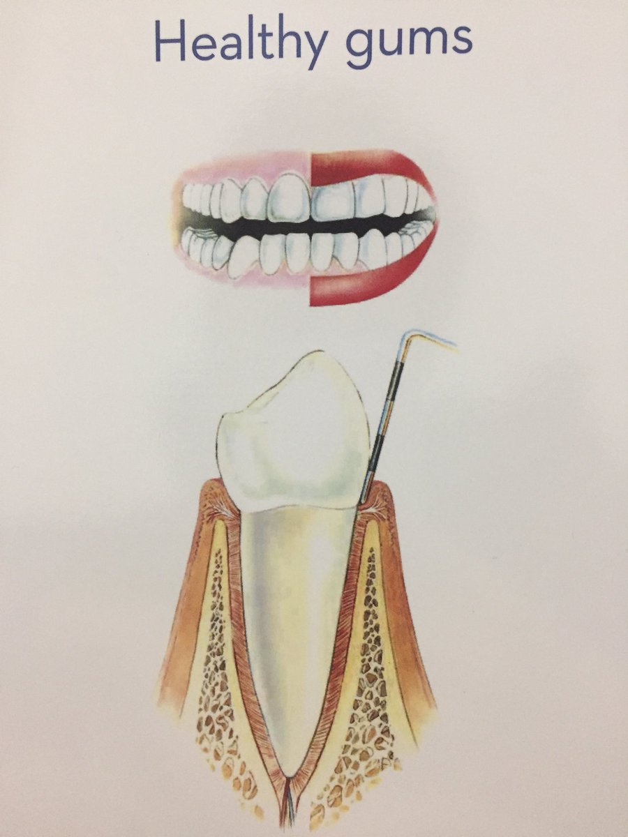 يظهر لدينا الجيب اللثوي بين السن واللثة بشكل صحي وطبيعي
