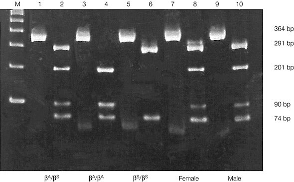 المصاب بمرض خلايا الدم المنجلية راح ينتج جسمه الهيموجلوبين بالصوره الاتيه