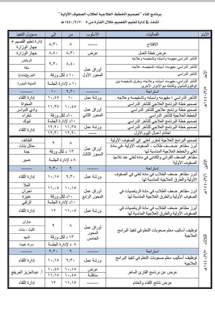 ١/إقامةالبرنامج العلاجي نهايةالعام آخر فرصةللطالب ومن حقه