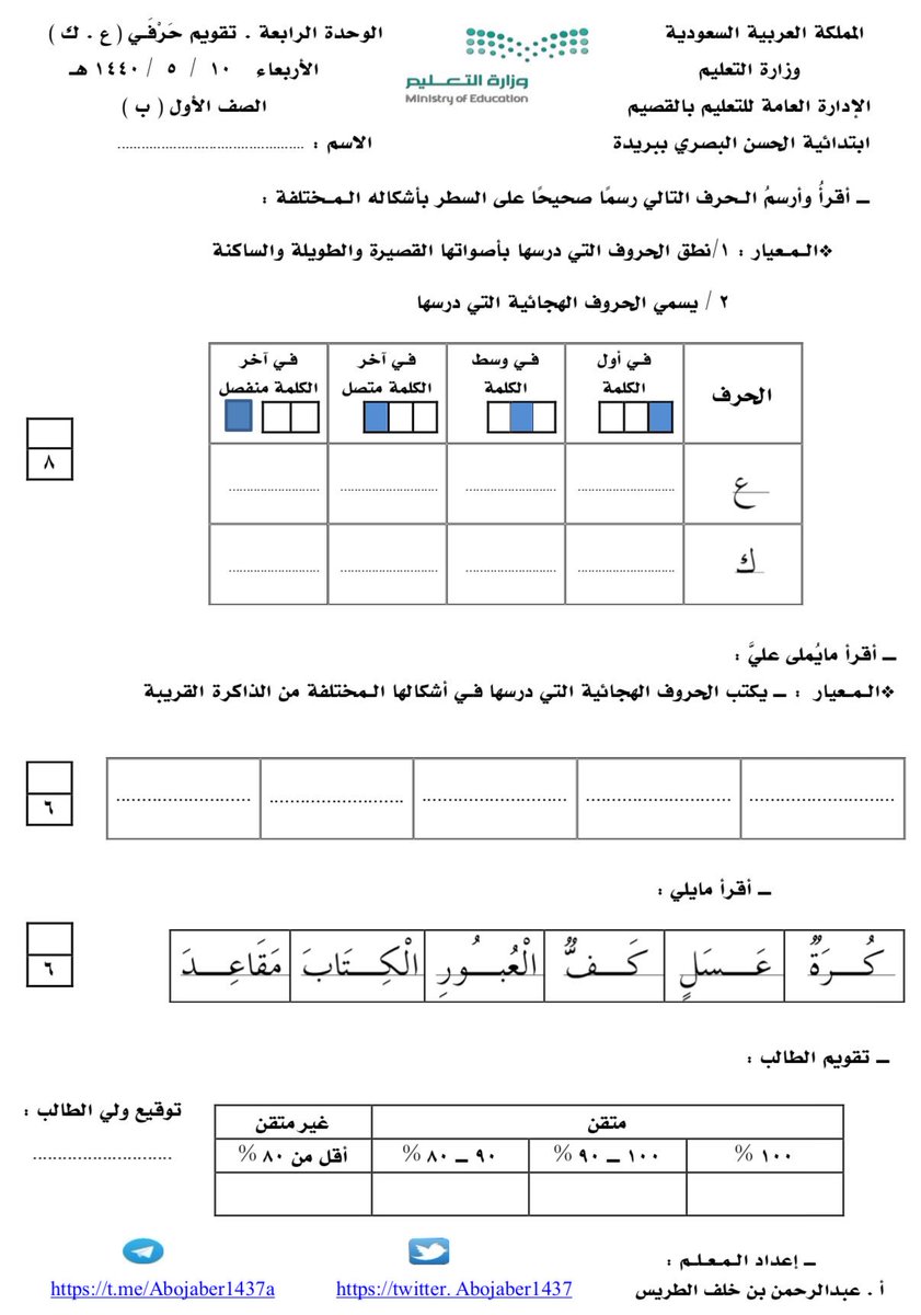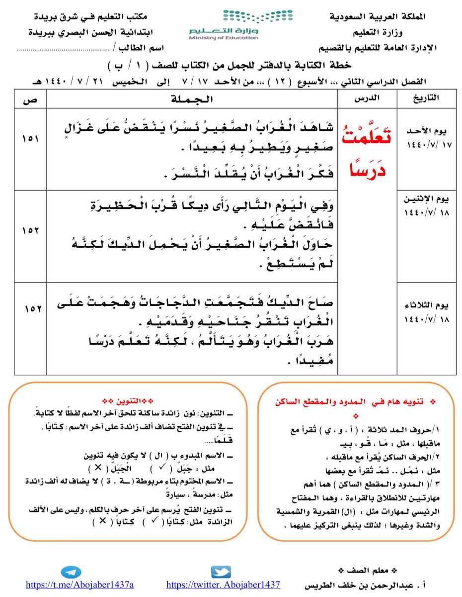 #الصف_الأول الابتدائي #الفصل_الدراسي_الثاني ١٤٤٠ هـ