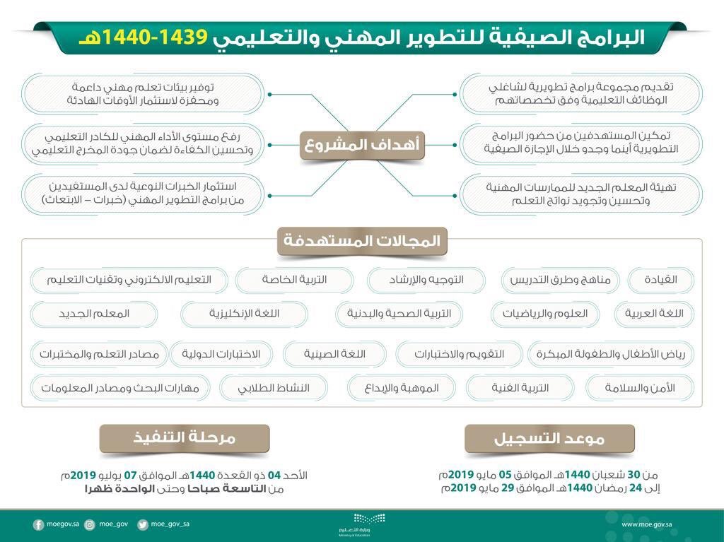 للمعلمين والمعلمات إلى تاريخ ٢٠ / ١٠ / ١٤٤٠ هـ ، وفتح مزيد من البرامج التدريبية النوعية
