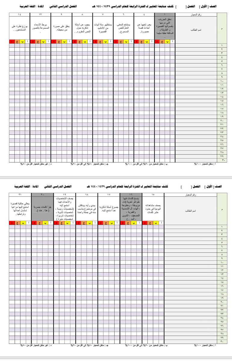 سجل متابعة المعايير لطلاب #الصف_الأول
