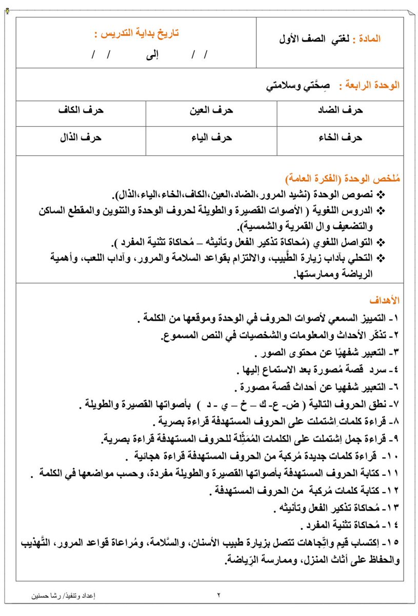 #نواتج_التعلم #الصف_الأول #الخطة_الأسبوعية