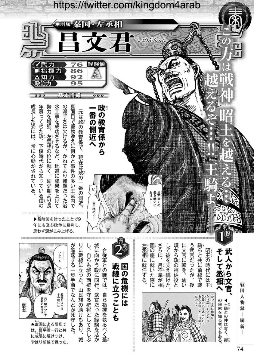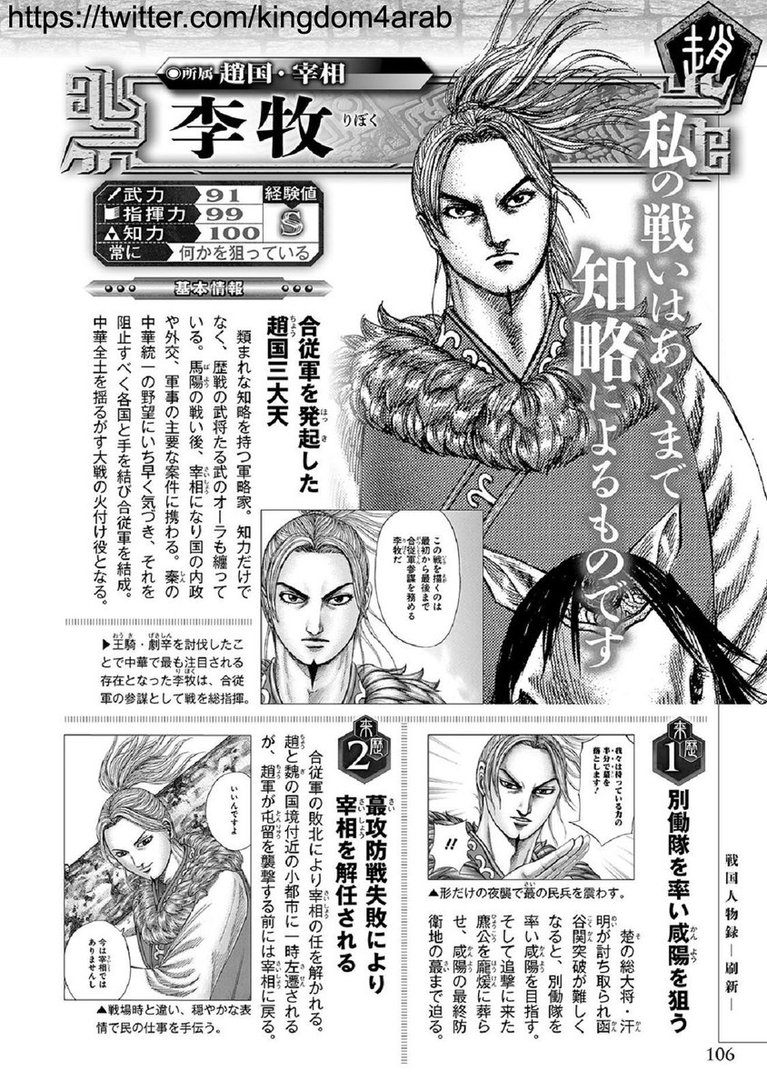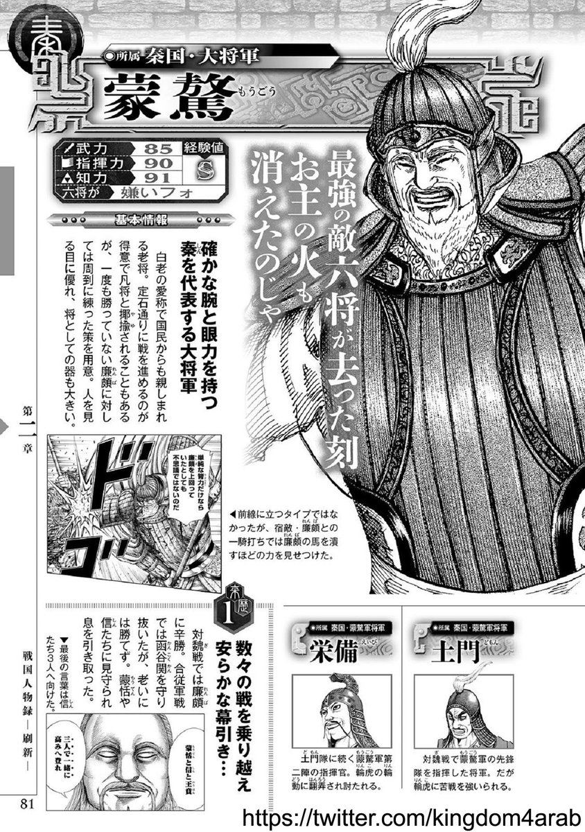طاقات وإحصائيات شخصيات مانجا #كينقدوم من كتاب الدليل الثاني (Kingdom Guidebook 2).