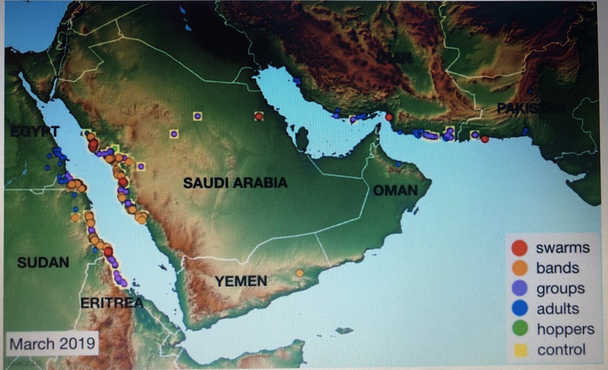 لعلك تراجع صورة تحرك #الجراد_الصحراوي من خلال خرائط #الفاو @FAO المرفقة لتعرف أن #الأسراب جهتها الشرق الآن