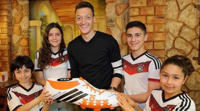 👑 رويال إيد رغم أنها ليست مساهمة مالية مباشرة. تبرع مسعود أوزيل بقميص أرسنال الموقّع في الحدث الخيري "كرة القدم من أجل السلام" في عام 2018. وقبل الأمير ويليام التبرع المدروس عندما أطلقت الجمعية الخيرية حمله #FootballSavesLives