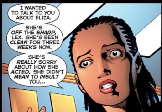 بعد عدة اسابيع أليزا هارمون توقفت عن أستعمال المخدر . ذهبت صديقتها لإقناع ليكس لوثر لي إرجاع إليزا هارمون للفريق، وفي ذلك الوقت إليزا هارمون كانت تتمنى أن تنضم لفريق "تايتنز" لتصبح كيد فلاش الجديد.