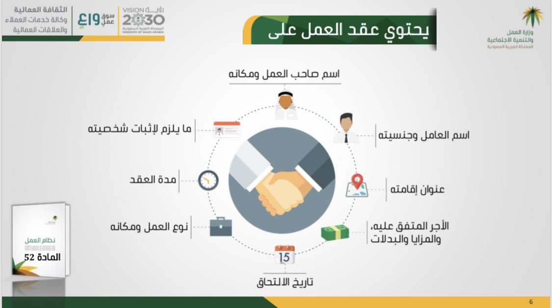 يجب أن يحتوي #عقد_العمل على الآتي :