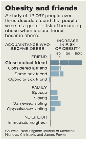 حيث تقترح الدراسة أن السلوكيات (إيجابية/سلبية) تنتشر بالعلاقات الاجتماعية وعليه إنه من المهم النظر لمشكلة السمنة كمشكلة طبية واجتماعية ايضا