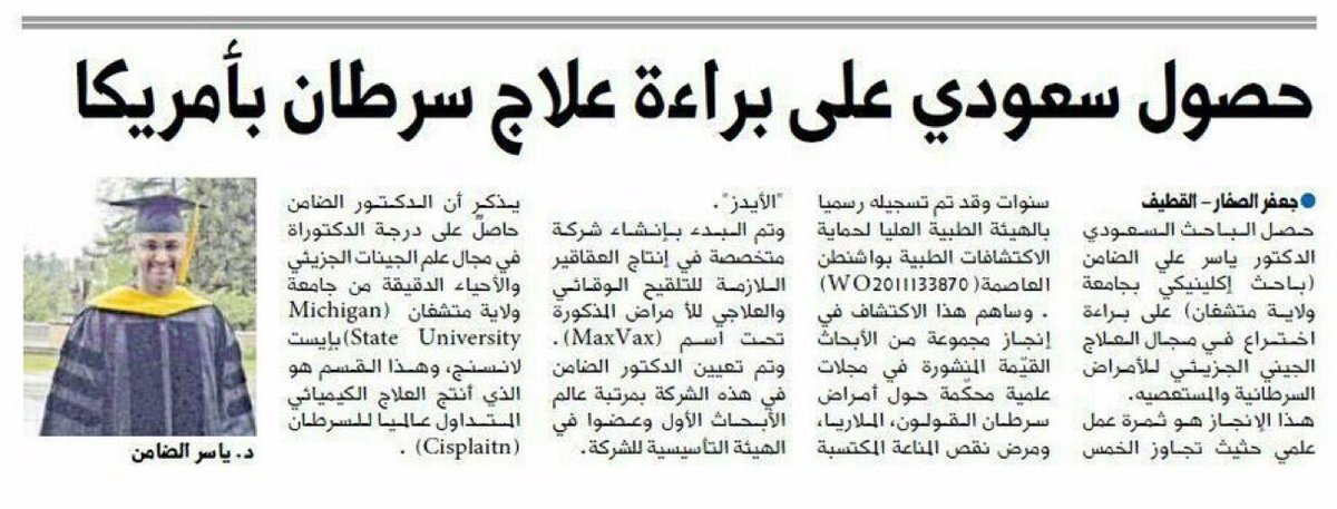 *كُرم ونال شهادات تقدير وبراءات إختراع من #امريكا وغيرها