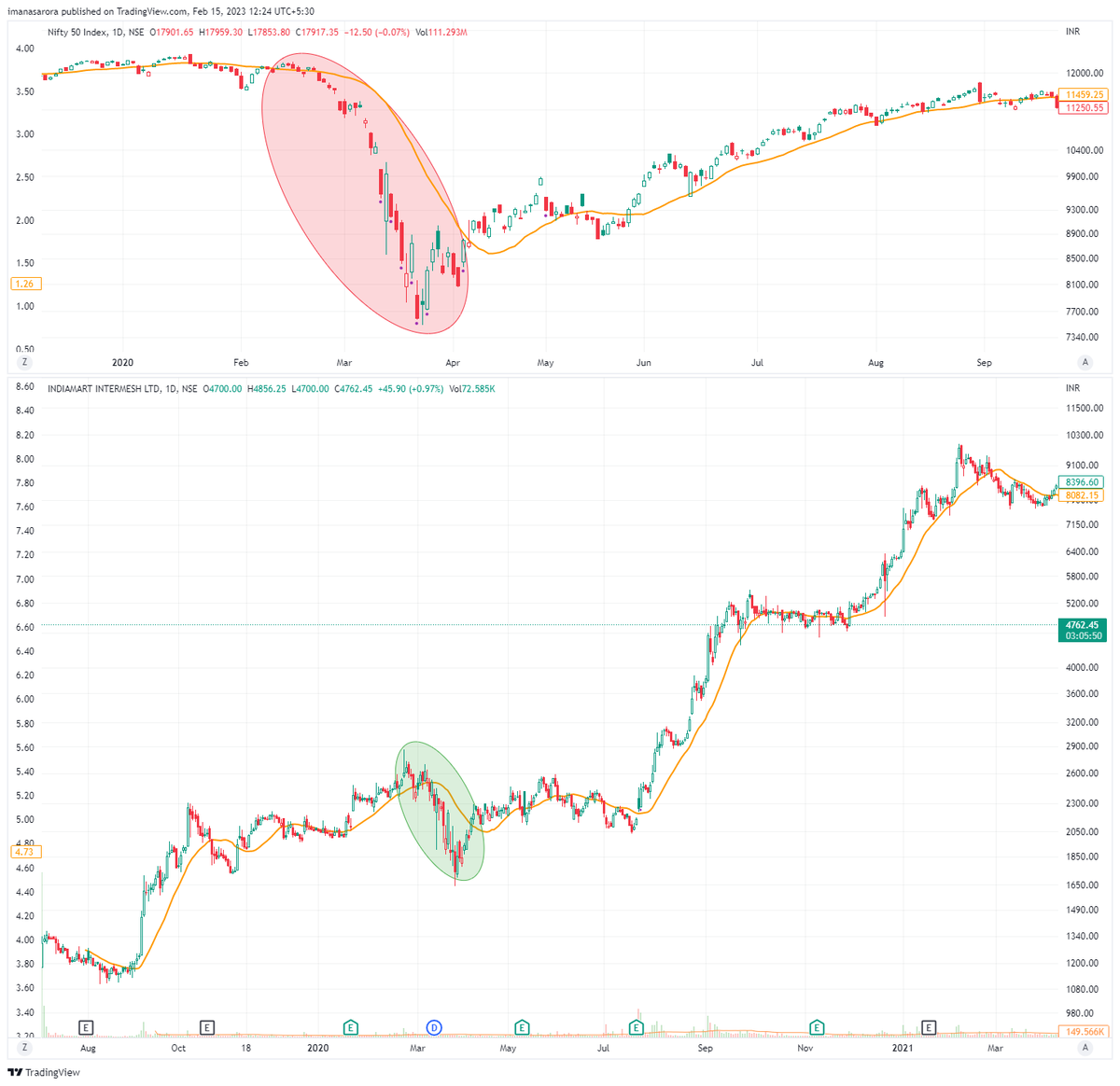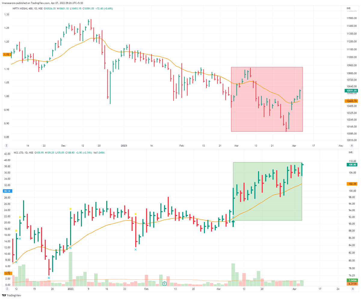 The stock ended up going 2.5x from there as soon as Nifty stopped going lower.