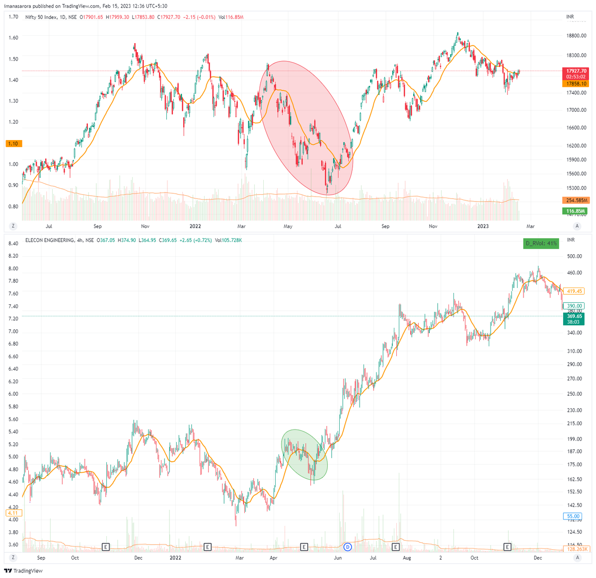 The stock was basing around 50dma, up around 100% from 52w lows & close to its 52w high when in the same period Nifty was making 52w lows.