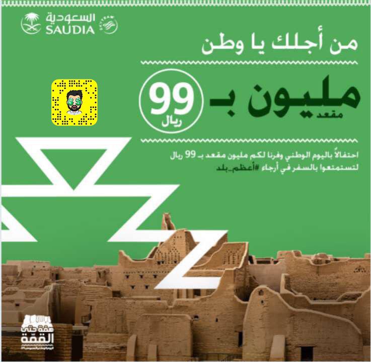 مليون مقعد بسعر 99 ريال لدى الخطوط السعودية بمناسبة #اليوم_الوطني89 ????✈️