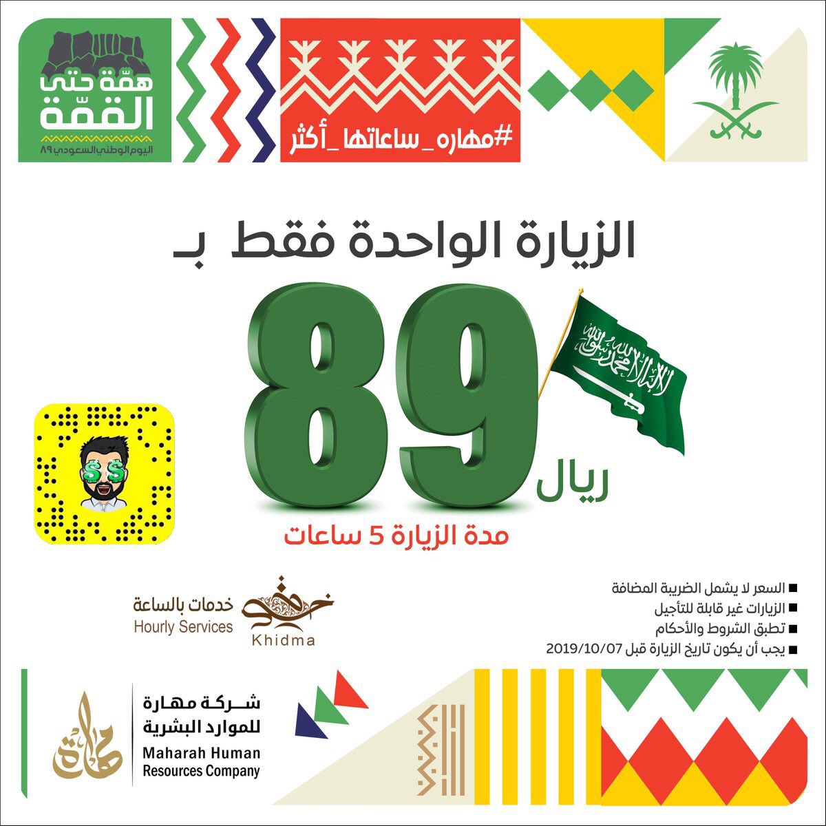 عرض قوي من مهارة للموارد البشرية زيارة 5 ساعات بـ89 ريال فقط بمناسبة #اليوم_الوطني89 ?????