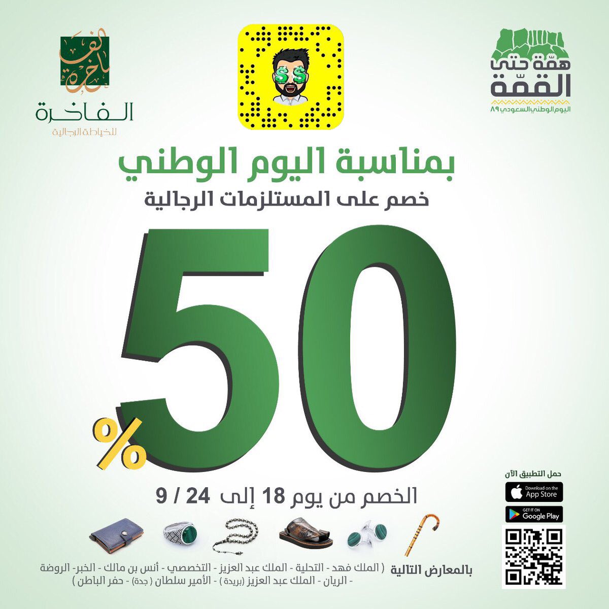 خصم 50٪ بمناسبة #اليوم_الوطني89 على المستلزمات الرجالية لدى الفاخرة للخياطة الرجالية???
