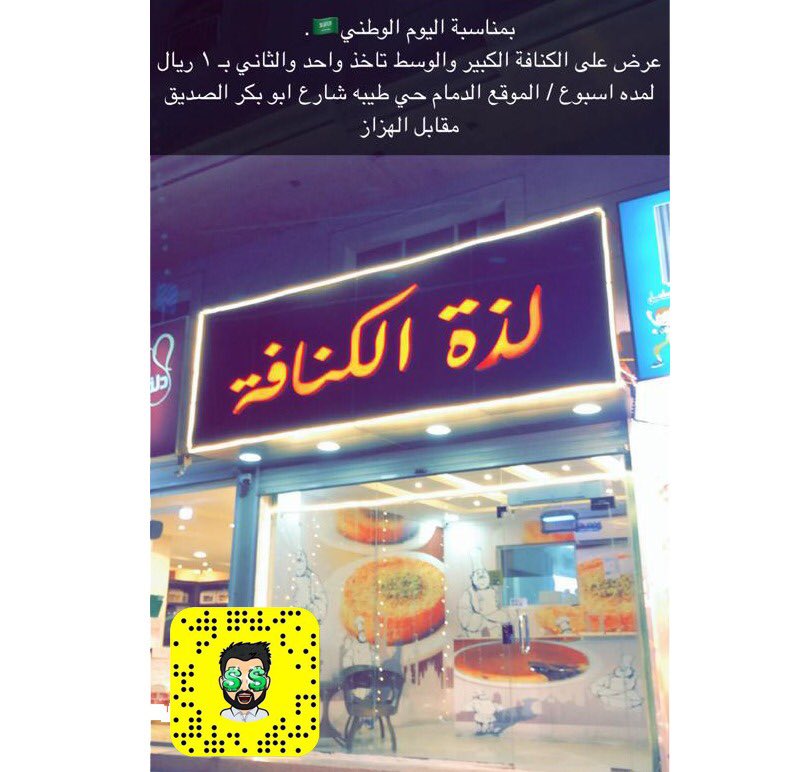 بمناسبة #اليوم_الوطني89 لذة الكنافة مقدمين عرض عند شرائك الحجم الكبير والوسط تحصل على الثانية مجانًا ???