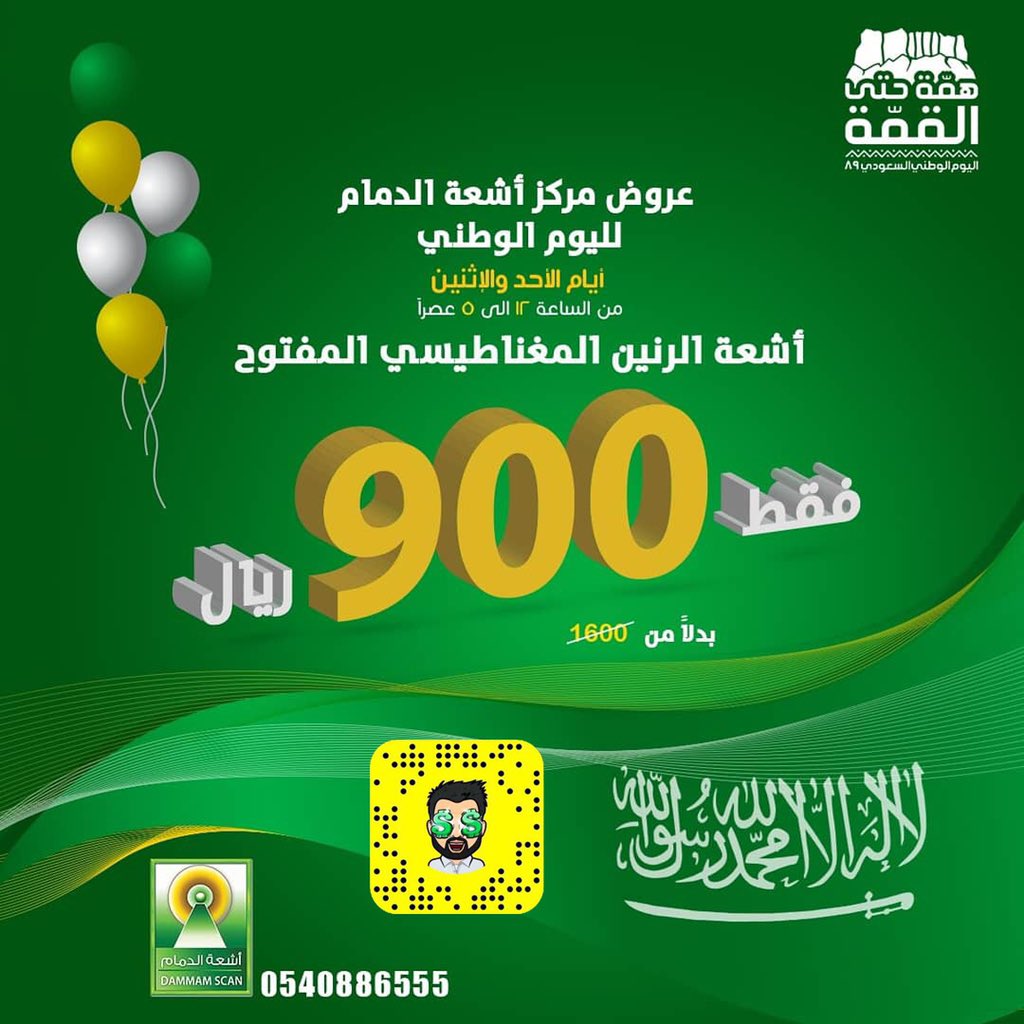عرض من مركز أشعة الدمام على اشعة الرنين المغناطيسي بسعر 900 ريال بمناسبة #اليوم_الوطني89 ??