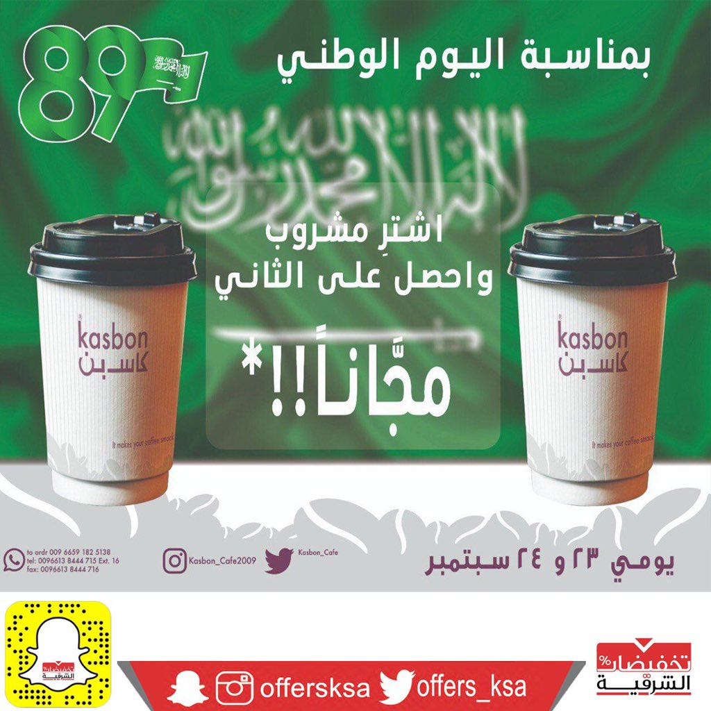 عرض بمناسبة #اليوم_الوطني89 اشتر مشروب والثاني مجانًا ?