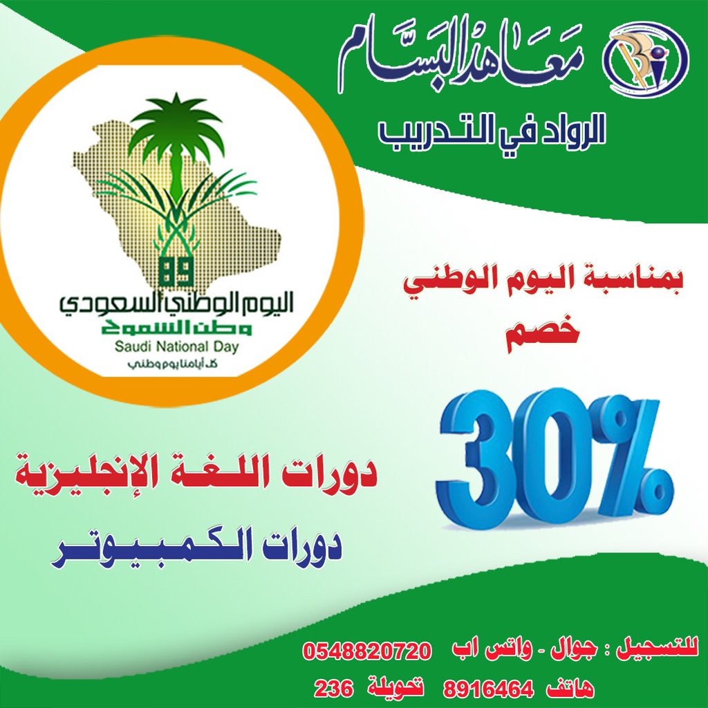 طور مهاراتك ولغتك الانجليزية تحت إشراف مختصين بالمجال لدى معاهد البسام وبخصم 30٪ بمناسبة #اليوم_الوطني89 ????