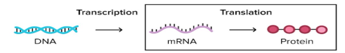 ٣- يتم تحويل الحمض الريبوزي الى سلسلة احماض امينية يتعامل معها الجسم كبروتين له وظائف محددة بالجسم.
