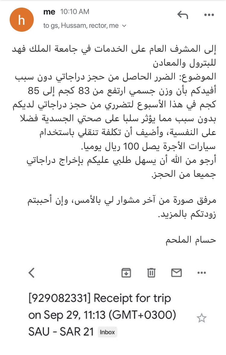 يبدو الإخوة في #جامعة_الملك_فهد_للبترول_والمعادن أعلنوا حالة النفير ويضغطون علي بالتوجه بالشكوى في الأمارة بسبب احتجاز الجامعة لثلاث سياكل بشكل غير نظامي