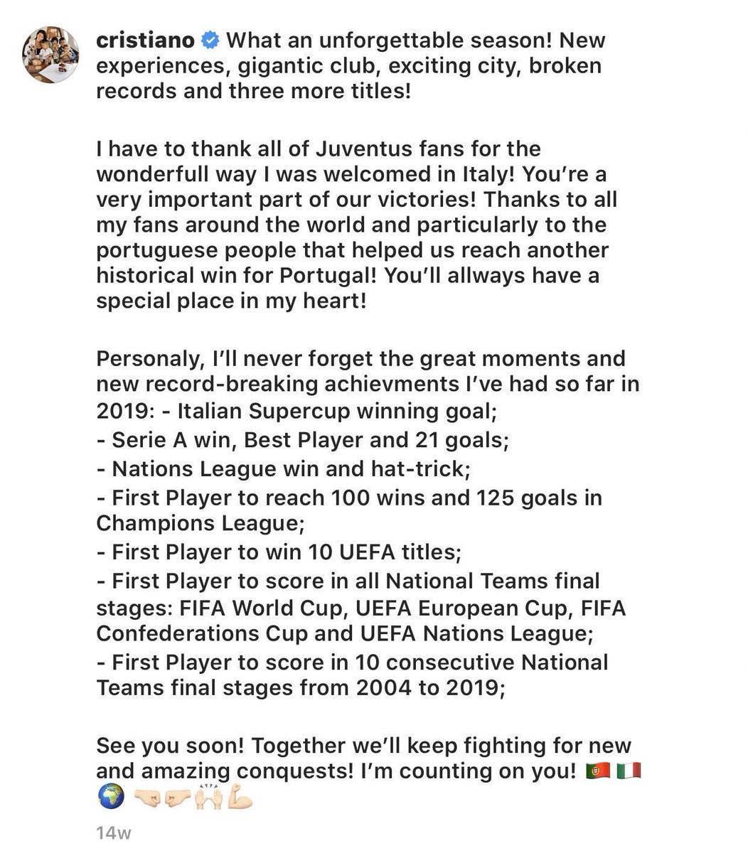 انتهى موسمه الأول مع اليوفي وكان فاشل بعض الإعلامين الذين يمتلكهم حاولوا تغطية الفشل الدريع في بطولة جديدة وكانت ودية بهاتريك سجله على سويسرا حيث وصل التطبيل الى المريخ مع العلم هذه البطولة كان سيلفا افضل لاعب فيها