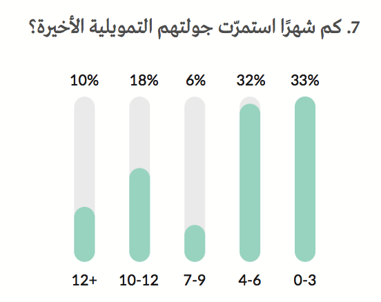 التقرير تم بناء على استبيان للشركات في محفظتنا في المنطقة وهي تشمل ١٠٠+ شركة ناشئة حصلت على تمويل يتجاوز ١١٤ مليون دولار