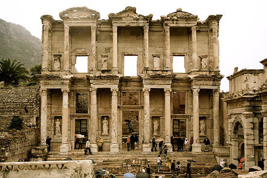و منها أشهر مكتبتين بناهما الإمبراطور أغسطس بعد انبهار يوليوس قيصر من مكتبة الإسكندرية و قراره بناء مكتبة في روما و لكن أُغتيل