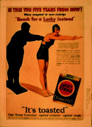 - ملاحظة: لم يكن مثبت علميا في ذلك الوقت أن التدخين مضر بالصحة. وتم اكتشاف تأثير التدخين على الصحة بعد ثلاثين عاما من هذه الحملة.
