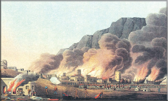وفي أول سنة وردوا لأخذها رجعوا بالخيبة ولم يتمكنوا منها، وكذلك في المرة الثانية بعد سنة مع معاضدة جميع الأعراب والنصاب لهم، وفي الثالثة حصروا البلد لتسلطهم على البحر حيث أنها جزيرة، حتى أضعفوا أهلها، وفتحوها قهراً، وكانت واقعة عظمى، وداهيةً دهما، لما وقع من عظم القتل والسلب