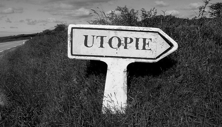 صاغ مصطلح يوتوبيا المفكر السير توماس مور (1478-1535) من الكلمتين اليونانيتين (OU) وتعني (لا) و (TOPOS) وتعني (مكان) والترجمة الحرفية للجملة هي (ليس في مكان)