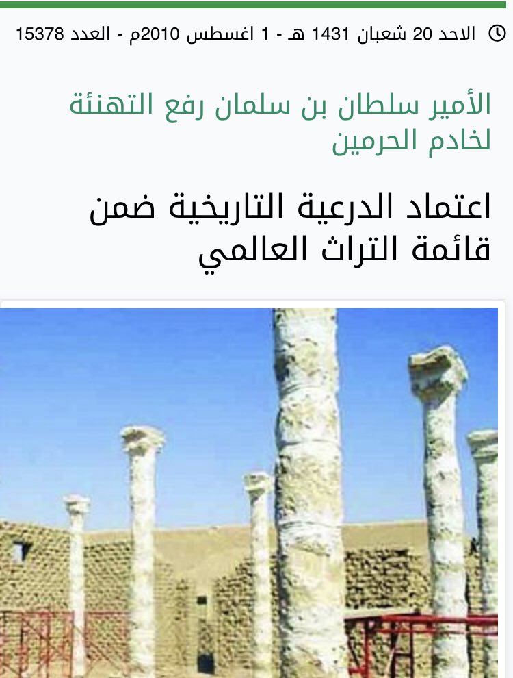 نقطة أخرى في تطوير الدرعية وهي جزئية