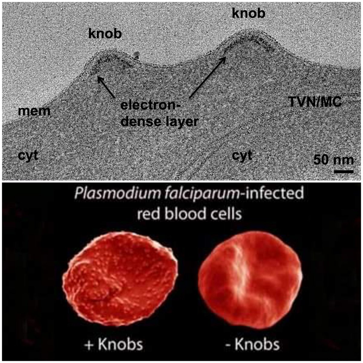 هذه البروتينات تعمل كبوابات على سطح الخلية الحمراء المصابة وتسمى Knobs