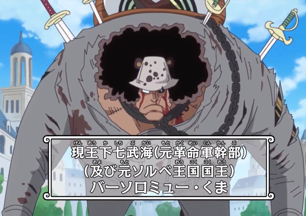 ٣-مملكة Doerena أو Biggschots حضر نبيل منها قتال بلوك سي ولما سمع اسم لوفي من كافندش، استهزأ بلوفي كونه فشل في إنقاذ أخيه ايس في المارينفورد، حينها هشم بارتولميو رأسه في الجدار وقطع لسانه ثأراً للوفي! اكتشفت كوالا سفينة من المملكة أخفوها كسفينة قراصنة في ميناء التجارة السفلي!