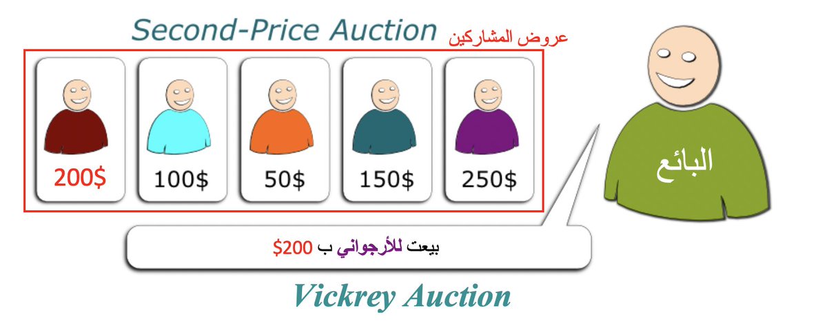 2⃣صاحب أعلى سعر يفوز بالمزاد ولكنه يدفع ثاني أعلى سعر (سُوم) !