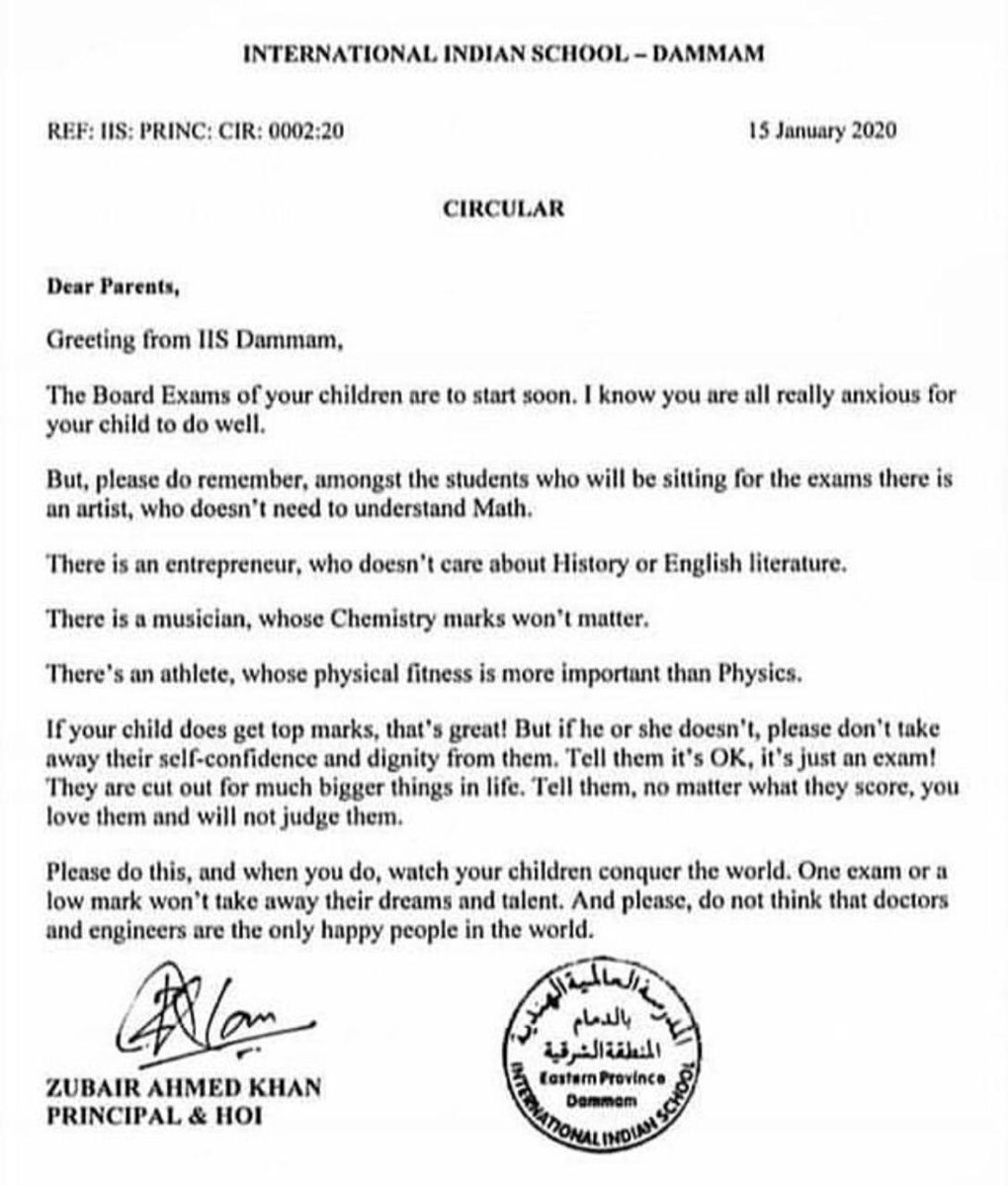 مدرسة في #السعودية تطلب من اولياء الأمور عدم الحرص على درجات ابنائهم أو أن يكون ابنائهم اطباء و مهندسين !!