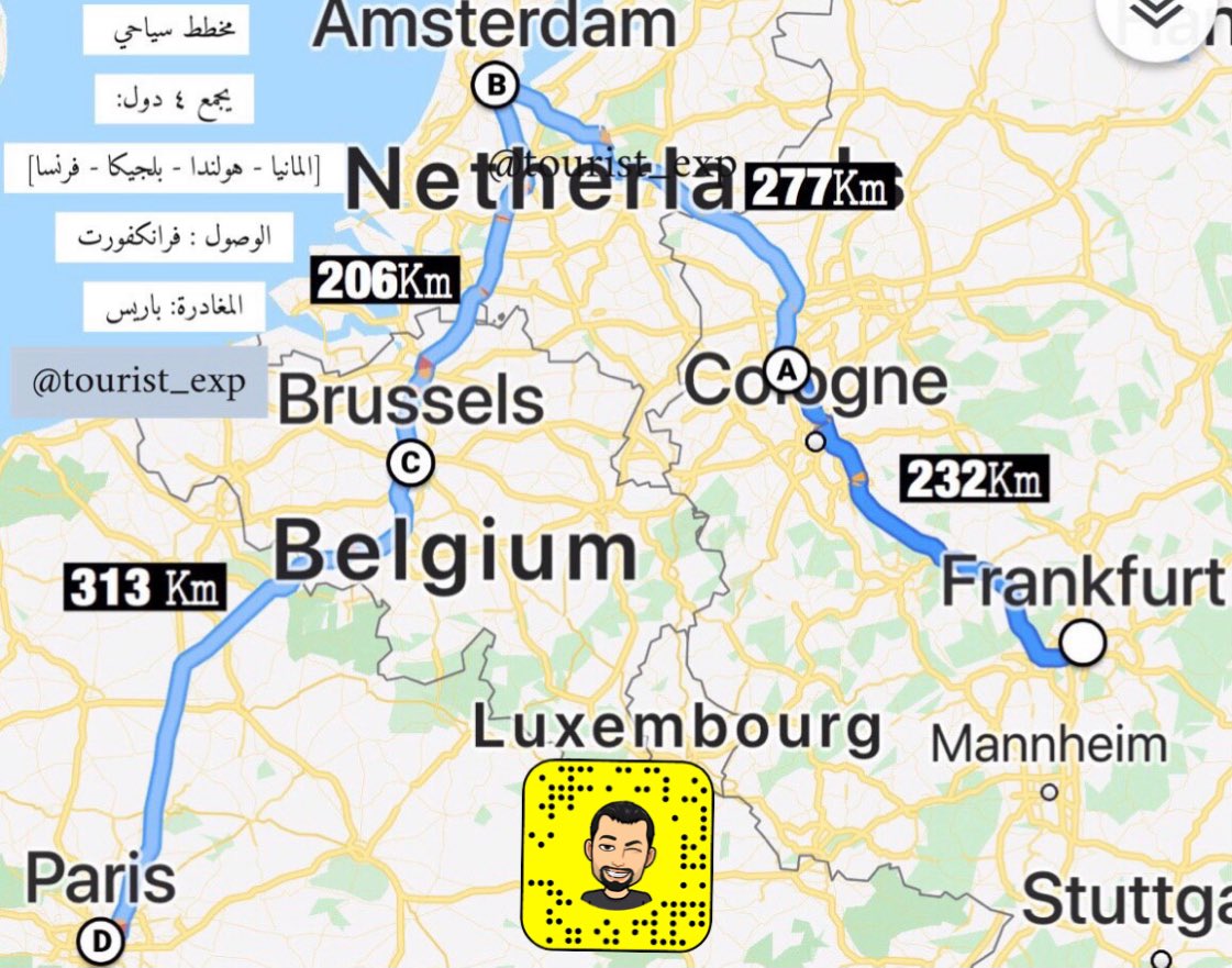 فرانكفورت⬅️دوسلدورف⬅️امستردام⬅️بروكسل⬅️باريس