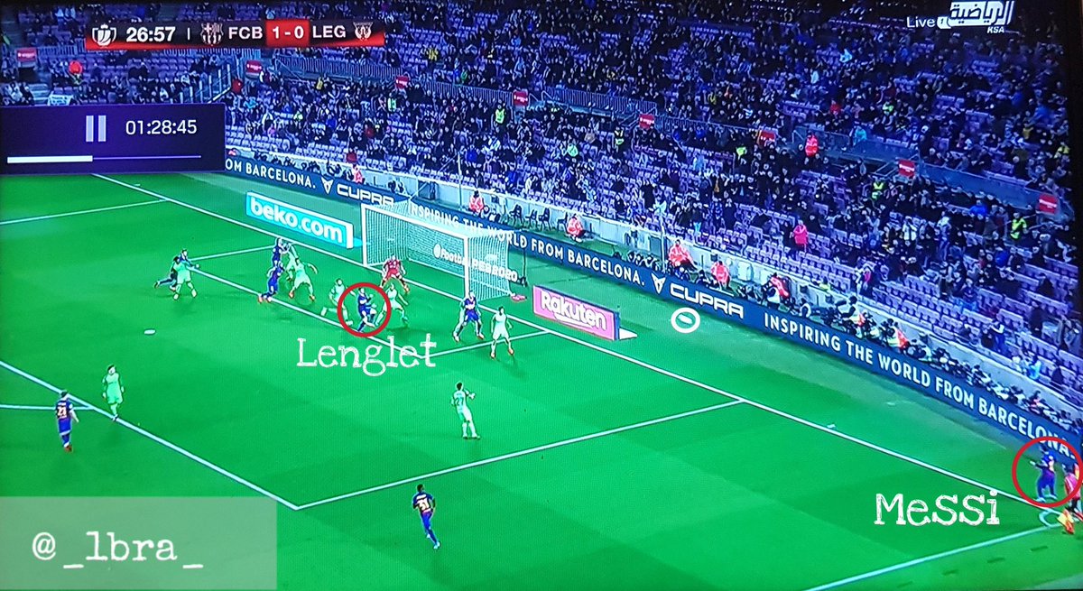 3️⃣1️⃣ إستثمار الكرات الثابتة ' ثنائية ميسي و لينجليه " : وهذا يتجلى في لقطة الهدف الثاني من لينجليه وصناعة ميسي . حاول الأثنين ذلك مرتين 👇 قبل أن ينجحا في الثالثة ' الثالثة ثابتة ' 👌 .