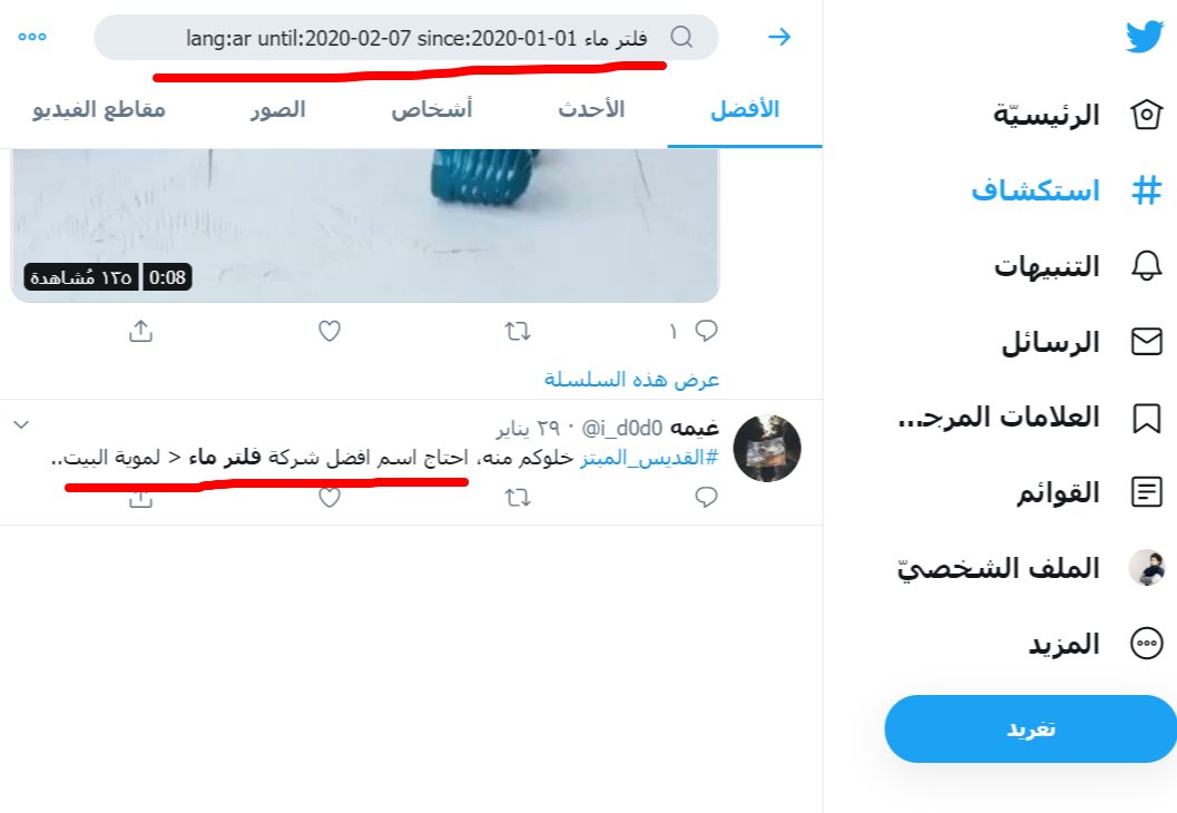 يتيح لك البحث عن تغريدة معينة في وقت تحدده عن طريق كلمة مفتاحية أو أكثر