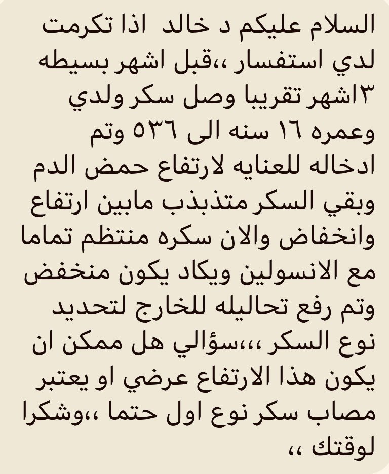 إذا كان المريض يتناول٣ أنواع من ادوية السكر الحبوب والمعدل السكر التراكمي١٠٪ وما فوق.