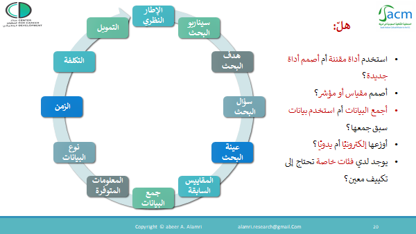 * الشريحة من عرض ورشة بعنوان تصميم أدوات البيانات قدمتها بالتعاون مع مركز التطوير الوظيفي بالملحقية السعودية بواشنطن