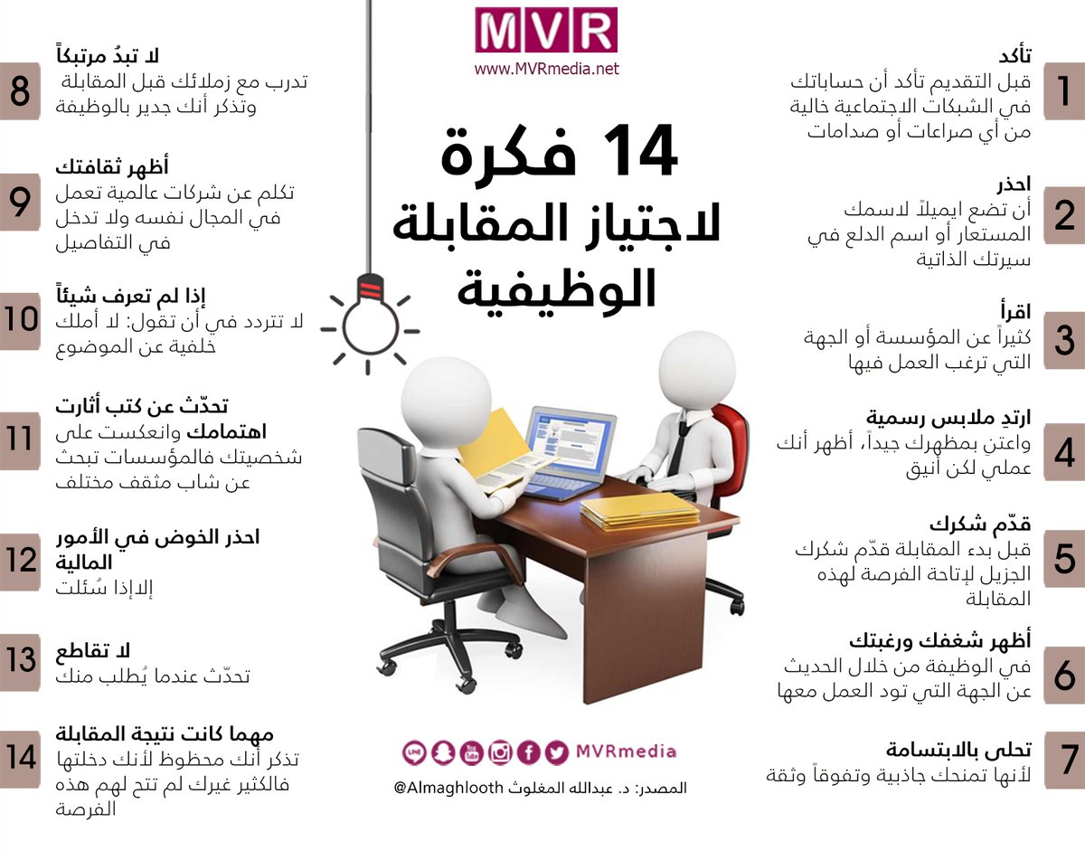 @Dr_Wafy @mkatouah @NoonEdu @_Maharah @edraak @Rwaq @EdlalOrg @EthraiSA @aanaabcom @YousefAlnamlah @Enr_des @8pixelco @Mohmdology @DesMeet @_NawafAlmajed @saudiemployment @jobs_km @2def_news @WadhefaDotCom @ewdifh @JobZatyCom @shrqiah_jobs @Shd3wa_stkfupm @Wadeiftk_Alolaa @btalah1 @Fahad_Y2 @ar8arcom @PartTimers2030 @yousefMaLMAJHAD 14 فكرة لاجتياز #المقابلة_الوظيفية