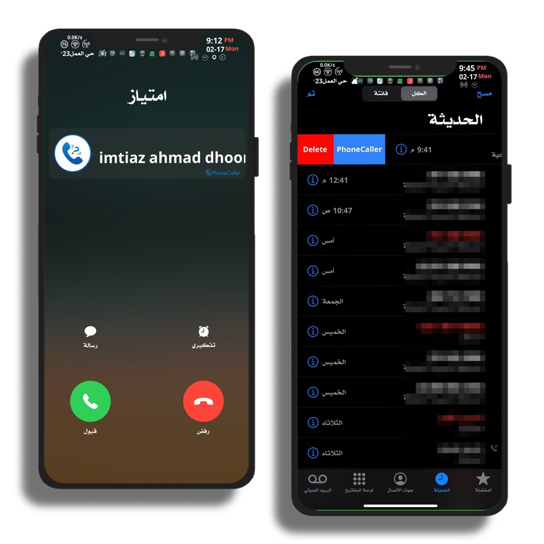 - اجراء مكالمة عن طريق سحب اعلى البار