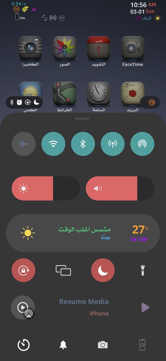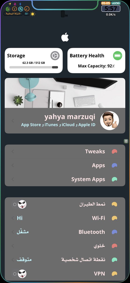 - تفعيل ثيمات بعض خصائص الجهاز مثل :