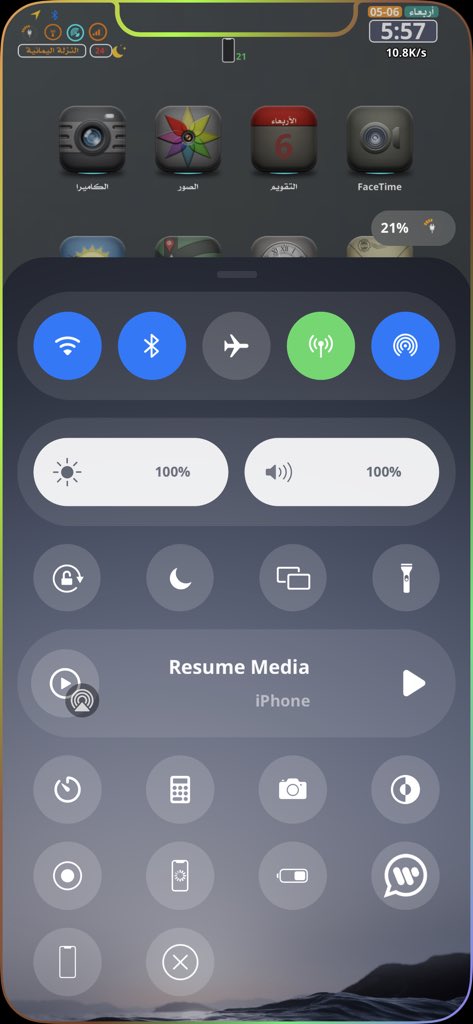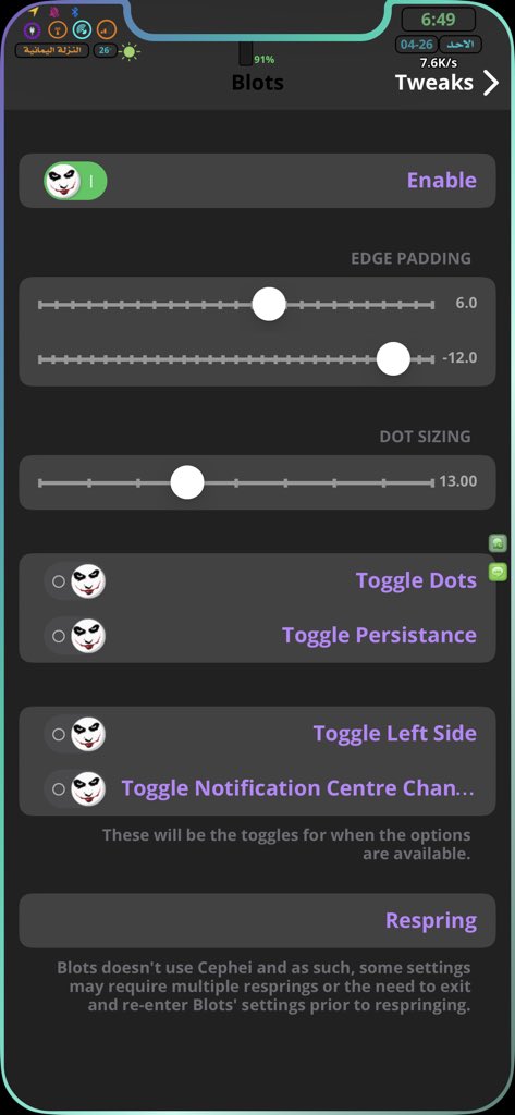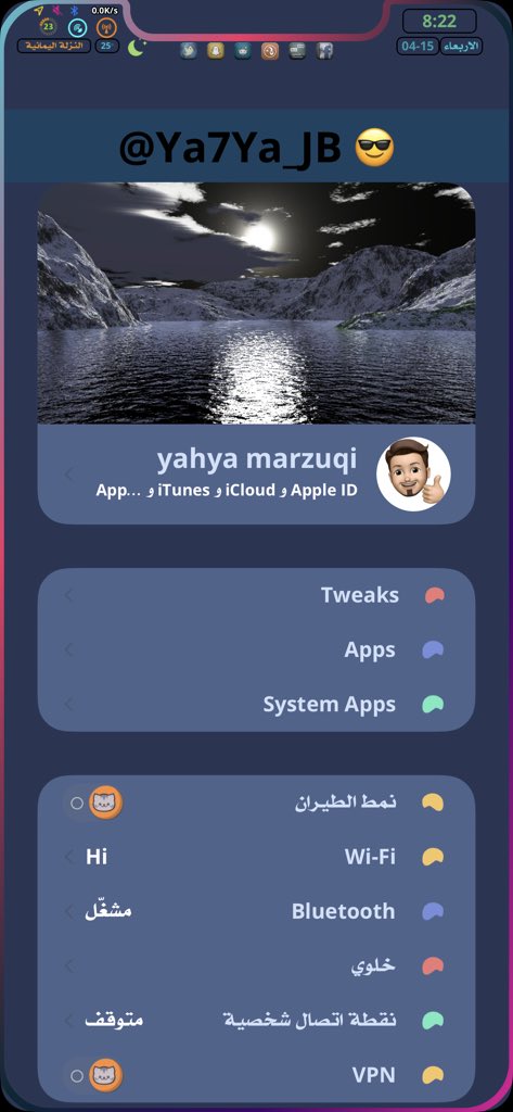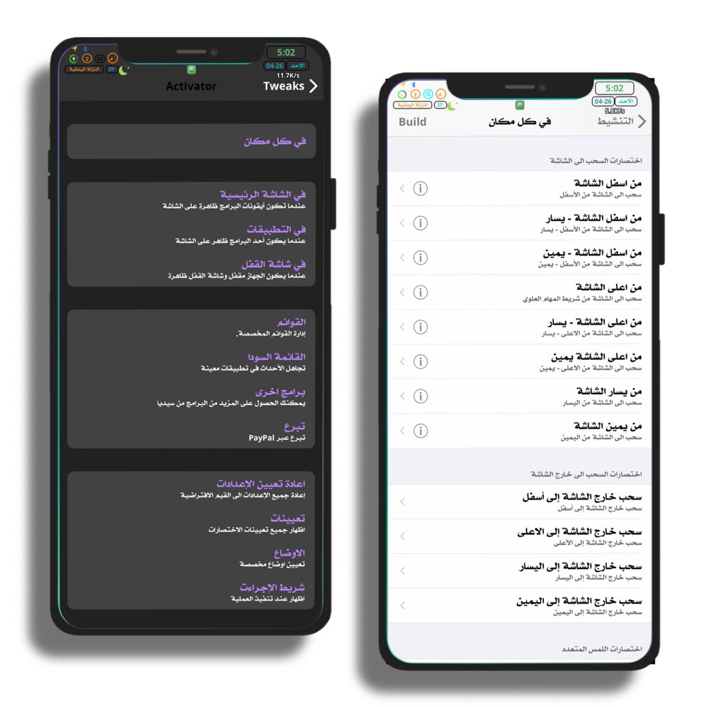 ( الدوك - البار - الإعدادات - اعادة التشغيل ...)