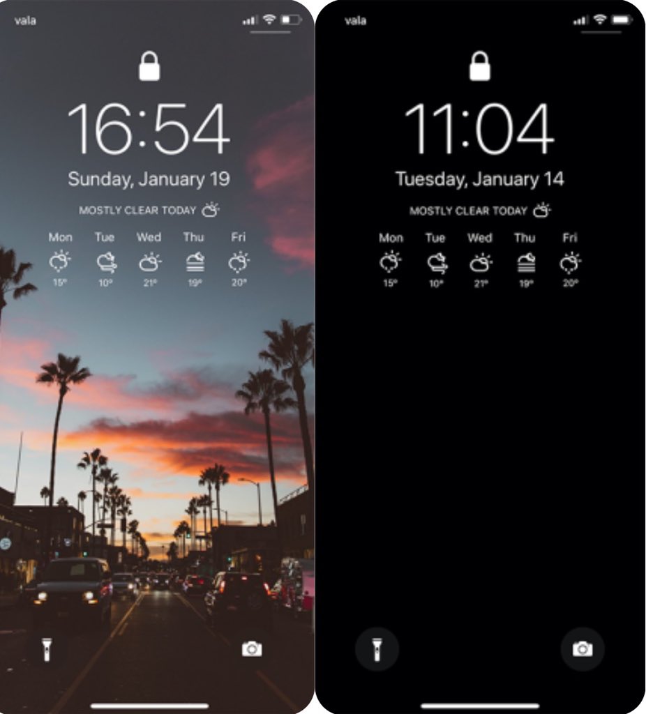 وضع حالة الطقس ودرجة الحرارة مع الساعة بشاشة القفل