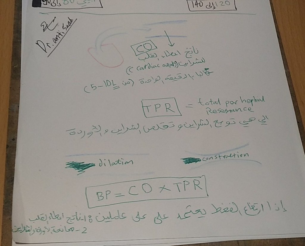 BP= cardiac output CO x total peripheral resistance (TPR)