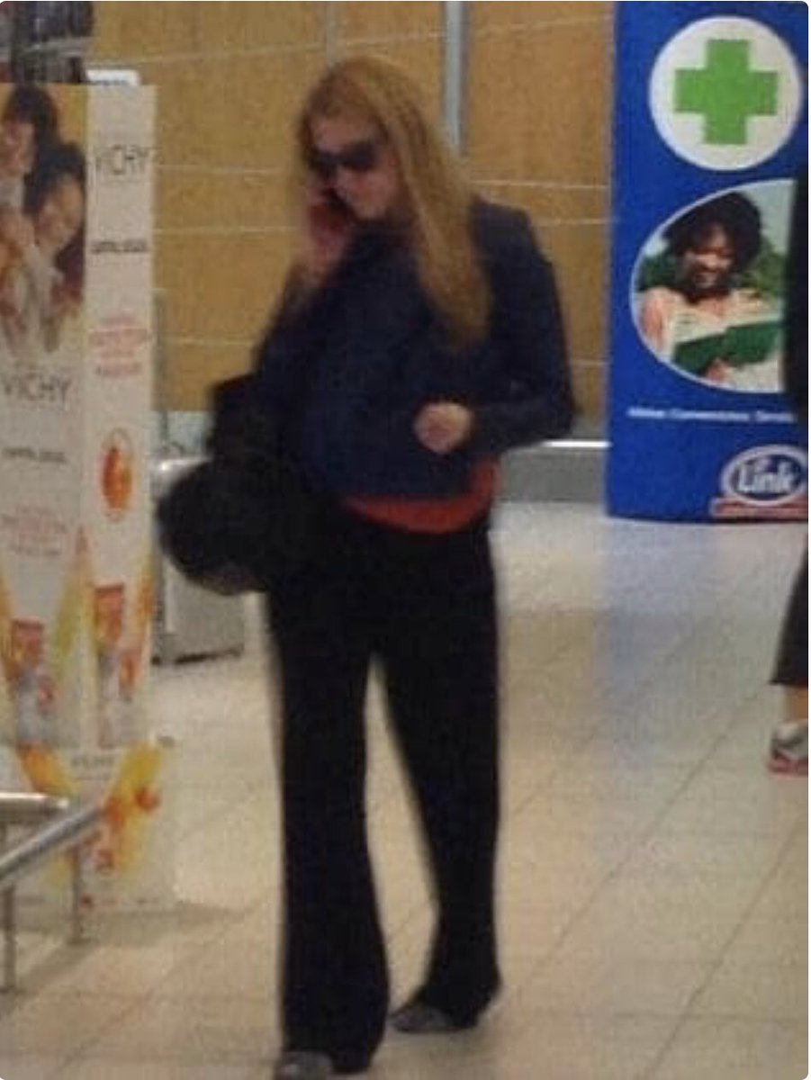 وصادف أن وجدها أحد الأشخاص وهي في صالة المطار حاملة شنطتها ترتدي نظارة شمسية فالتقط لها صورة ونشرها..