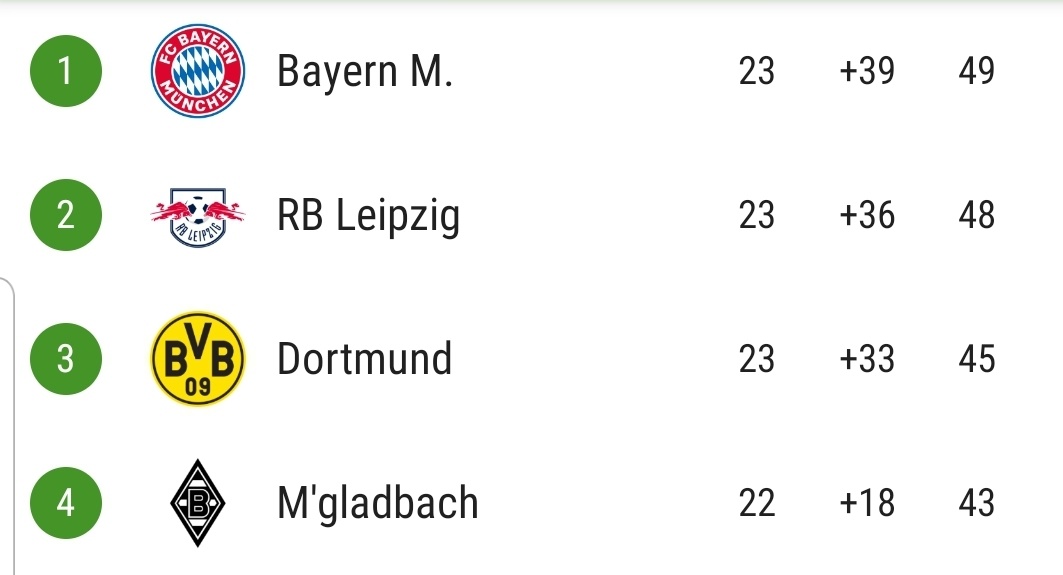 ⬅️ المنافسة على اللقب والتي هي في حال فاز #مونشنغلادباخ على #كولن فيكون الفارق بين الأول والرابع 4 نقاط فقط و هذا يعني ان اي خسارة او تعادل لأحد هذه الأفرقة يعني الخروج عن المنافسة.